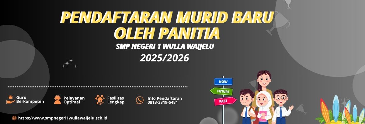 Selamat Datang di Portal Informasi Resmi SMP Negeri 1 Wulla Waijelu | 📢 INFORMASI: Sistem Penerimaan Murid Baru (SPMB) 2025/2026 TELAH DIBUKA. Segera daftar! | 🏫 Visi: "Mewujudkan sekolah yang Beriman dan Bertaqwa kepada Tuhan Yang Maha Esa, Berbudaya, serta Mampu dan Terampil dalam Ilmu Pengetahuan dan Teknologi" | ✉️ Kontak: smpnegeri1wullawaijelu@sch.id | 📞 Telp: 081333195481